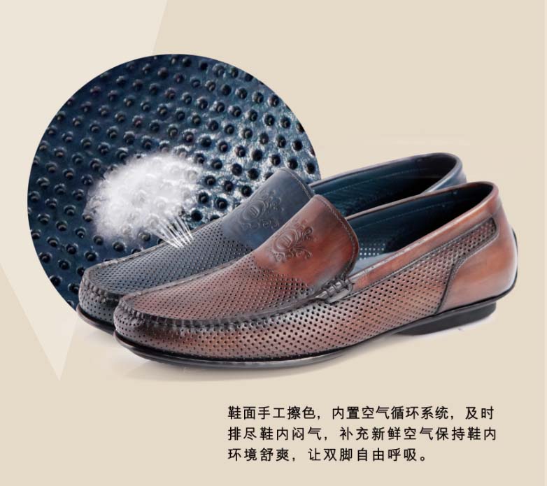 鞋面手工擦色,內(nèi)置空(kōng)氣循環系統,及時排盡鞋內(nèi)悶氣,補充新鮮空(kōng)氣保持鞋內(nèi)環境舒爽,讓雙腳自由呼吸。
